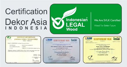 Certification Dekor Asia Indonesia, Indonesia Legal Wood, Vkan, Serbi ETC.